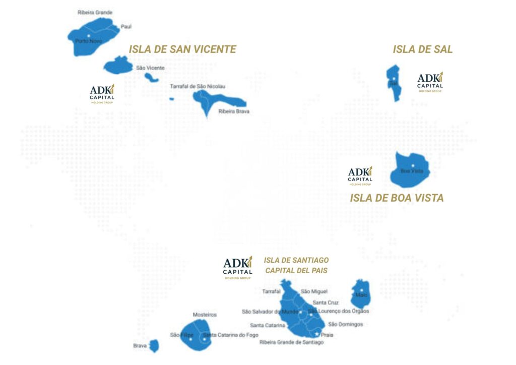 ADK CAPITAL HOLDING GROUP es un holding multi-sectorial con operaciones consolidadas en Cabo Verde y presencia física en las islas de Santiago (Praia), Sal (Espargos, Santa María, Palmeira), Boa Vista (Sal Rei) y São Vicente (Mindelo).